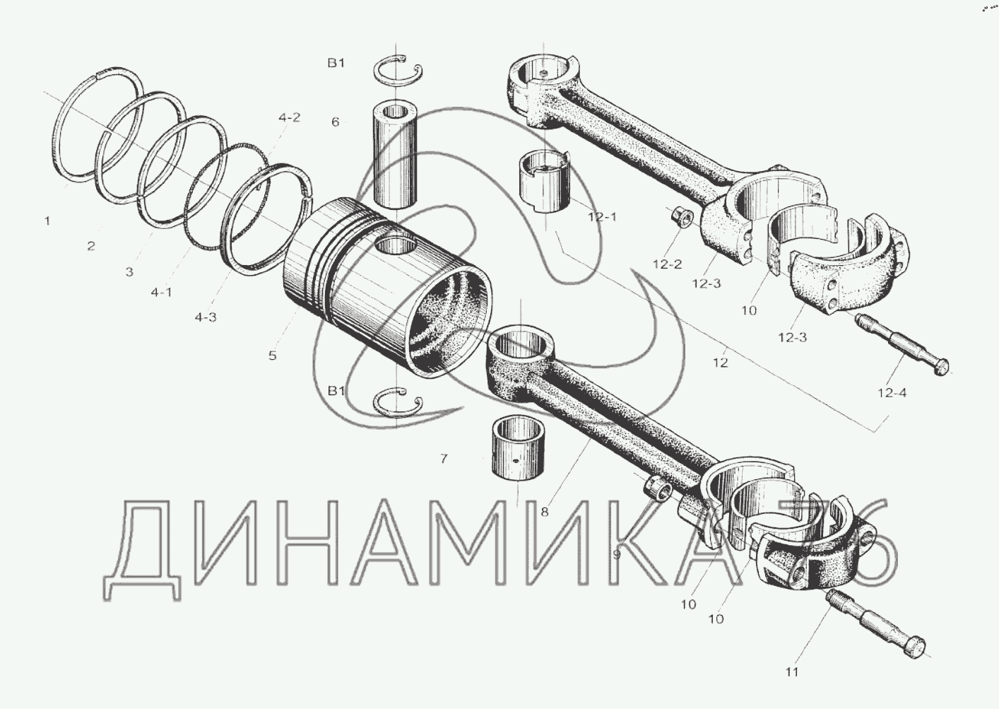 Перечень комплектующих от Piston and Connecting Rod Assembly на R6160