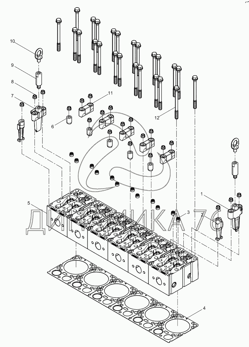 Перечень комплектующих от Cylinder head assembly на WD10 (DHD10G0208)