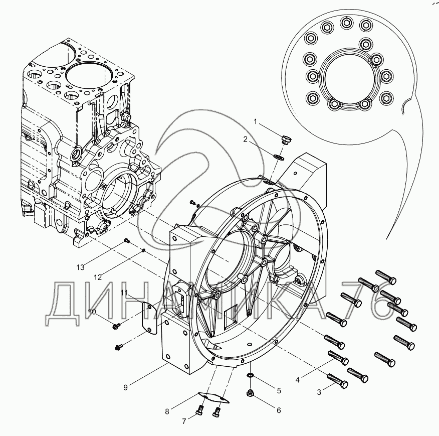 Перечень комплектующих от Flywheel Housing Group на WD10 (DHD10G0208)