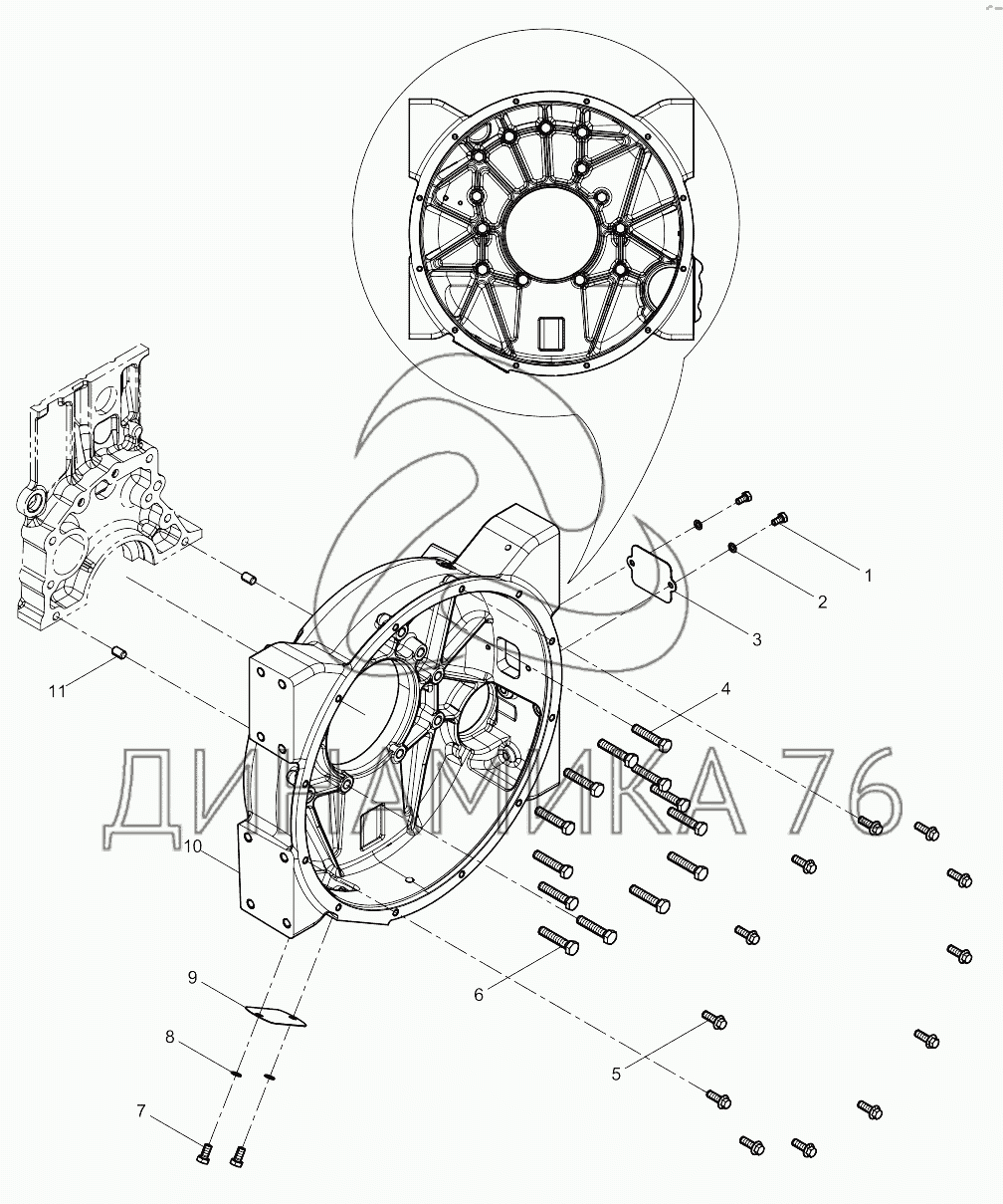 Перечень комплектующих от Flywheel Housing Group на WD10 DHD10C0009