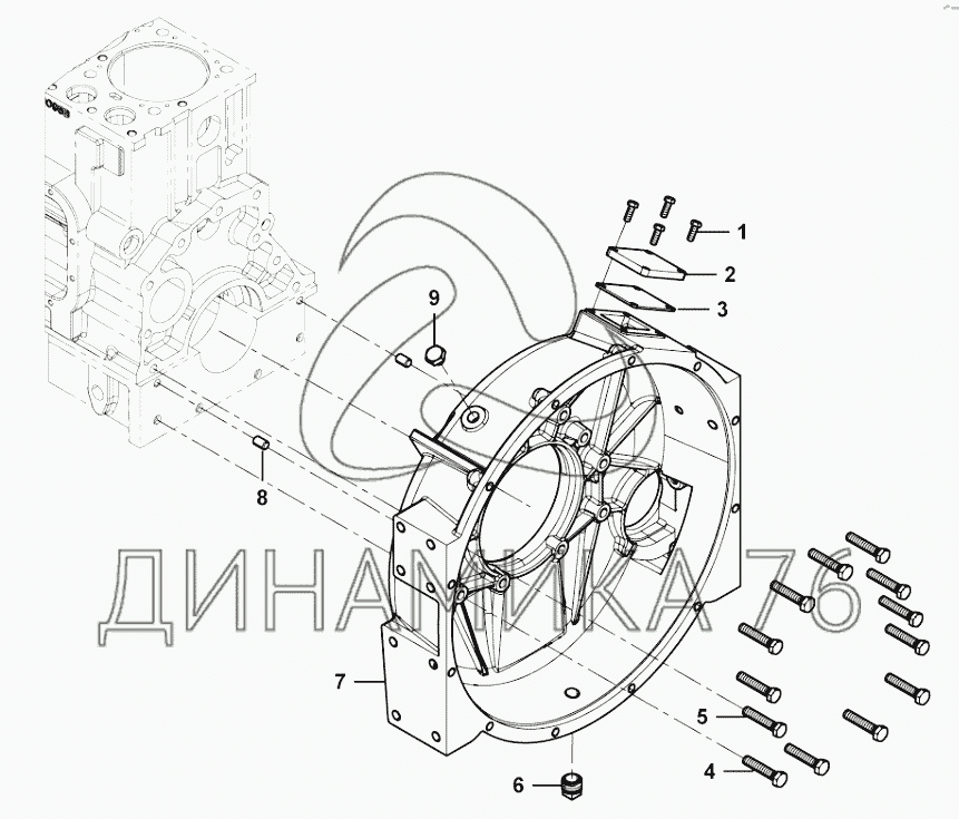 Перечень комплектующих от Flywheel housing group на WD10 G220E23