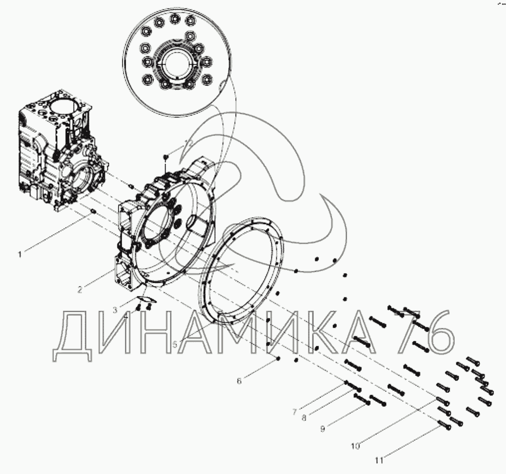 Перечень комплектующих от Flywheel housing group на WD10G220E21