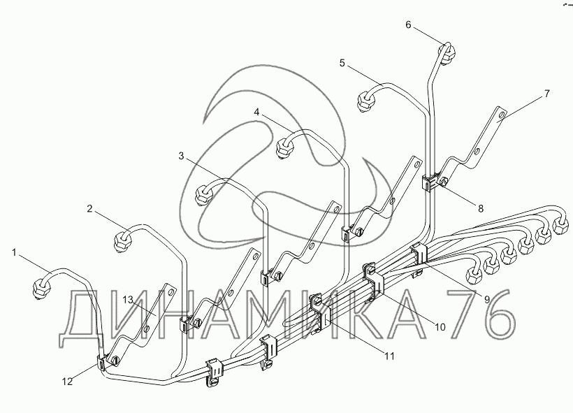 Перечень комплектующих от High pressure pipe assembly на WD10G220E23 (Евро 2)