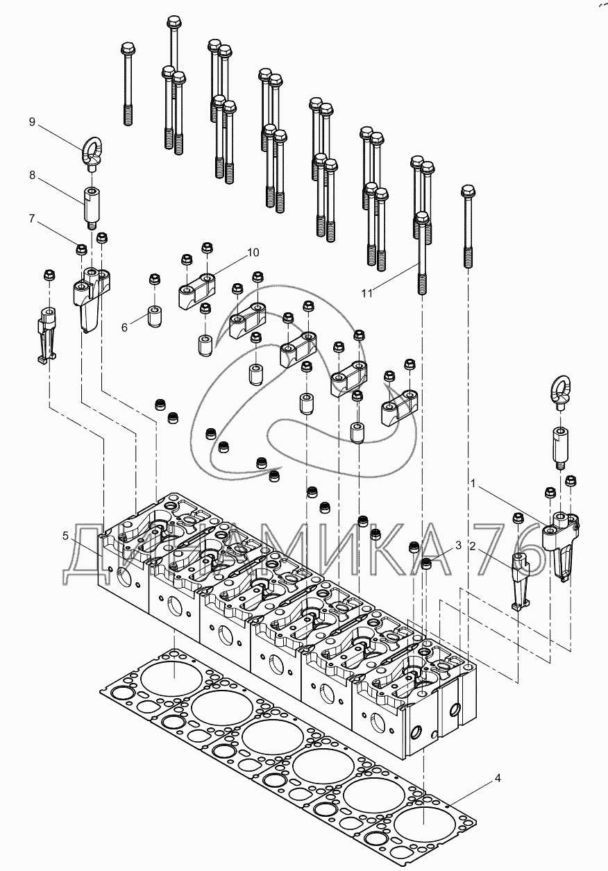 Перечень комплектующих от Cylinder head assembly на WD615 (DH615Q1890)