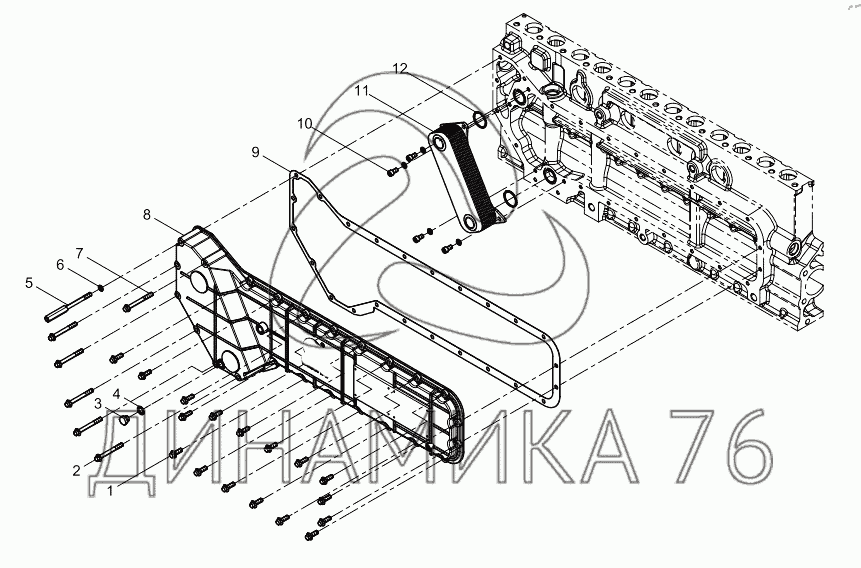 Перечень комплектующих от Oil cooler assembly на WD615 (DH615Q1890)