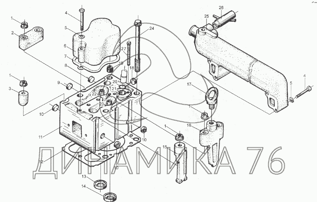 Перечень комплектующих от Головка блока цилиндров на WD615 (Евро 2)