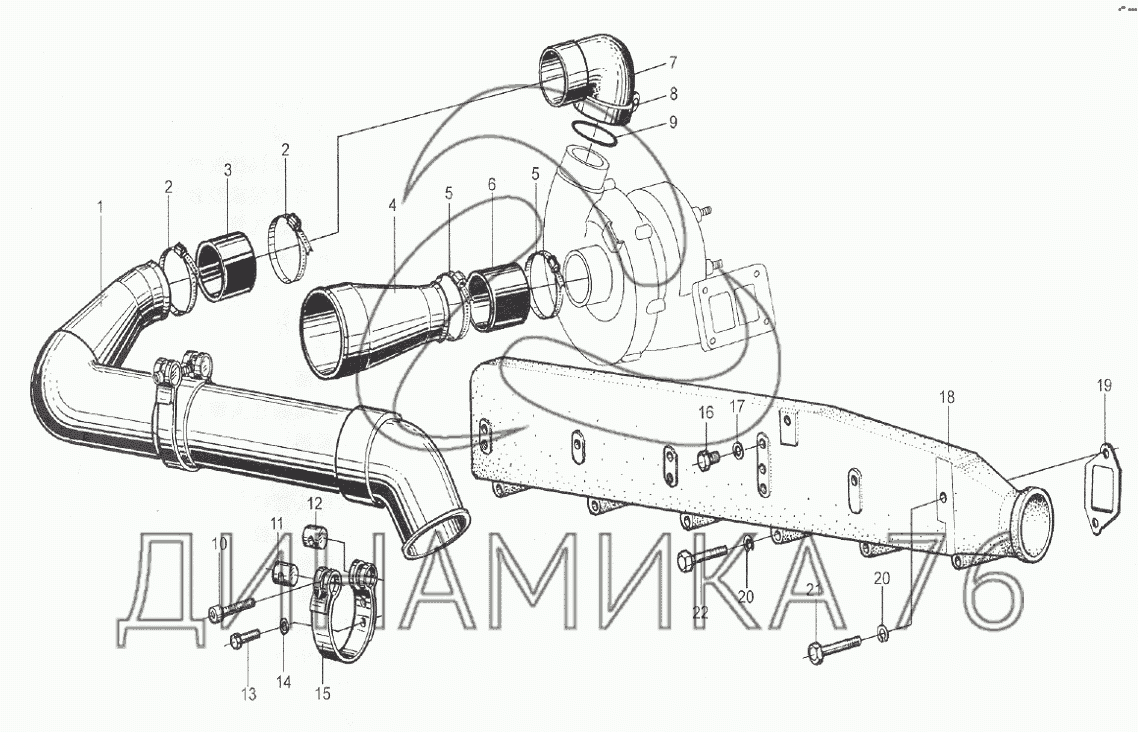 Перечень комплектующих от Воздухопровод компрессора на WD615 (Евро 2)