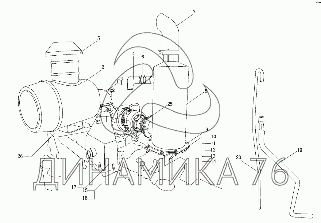 Впускная и выхлопные трубы — WD615 (Евро 3):