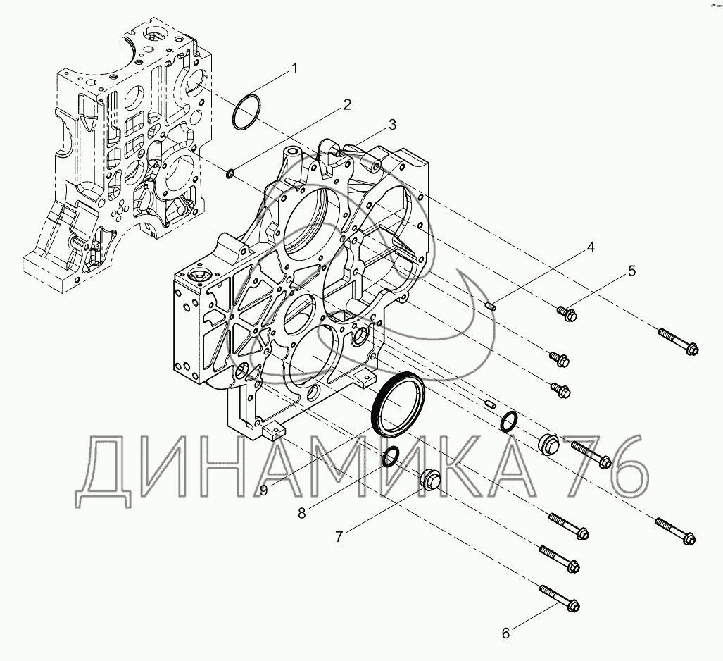Перечень комплектующих от Timing gear housing assembly на WP10 DHP10Q1242