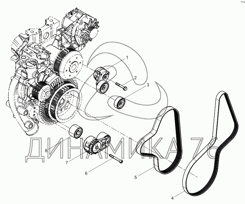 Перечень комплектующих от Tensioner and Belt Assembly на WP12 375E40 (Евро 4)