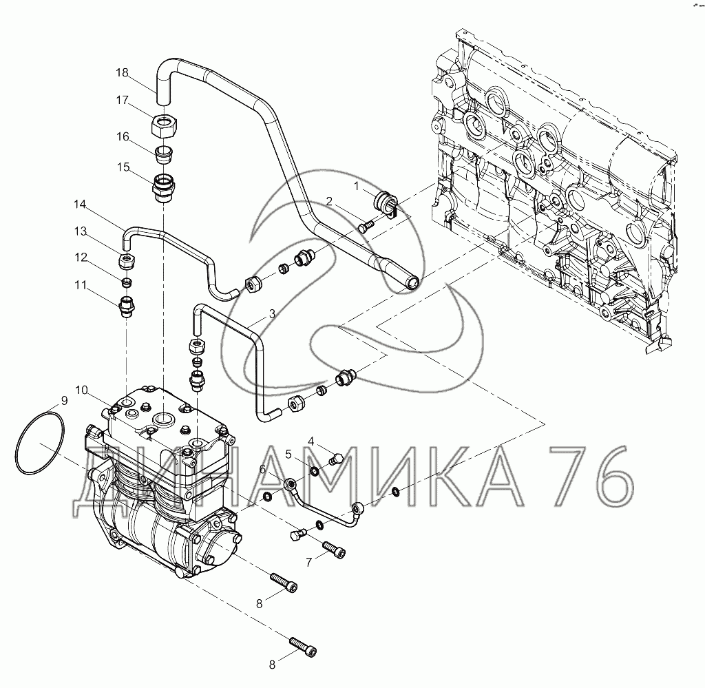 Маслопровод двухцилиндрового воздушного компрессора