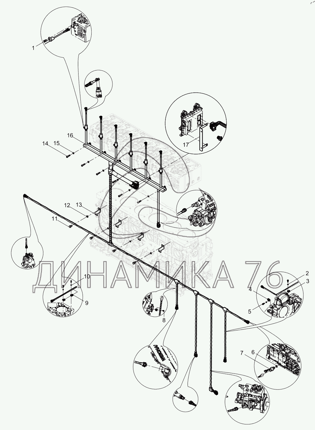 Схемы запчастей предназначены для справочных целей! Мы продаем не все запчасти от Electronic Control System Harness Group на WP12 DHP12N0219, представленные в этом списке.