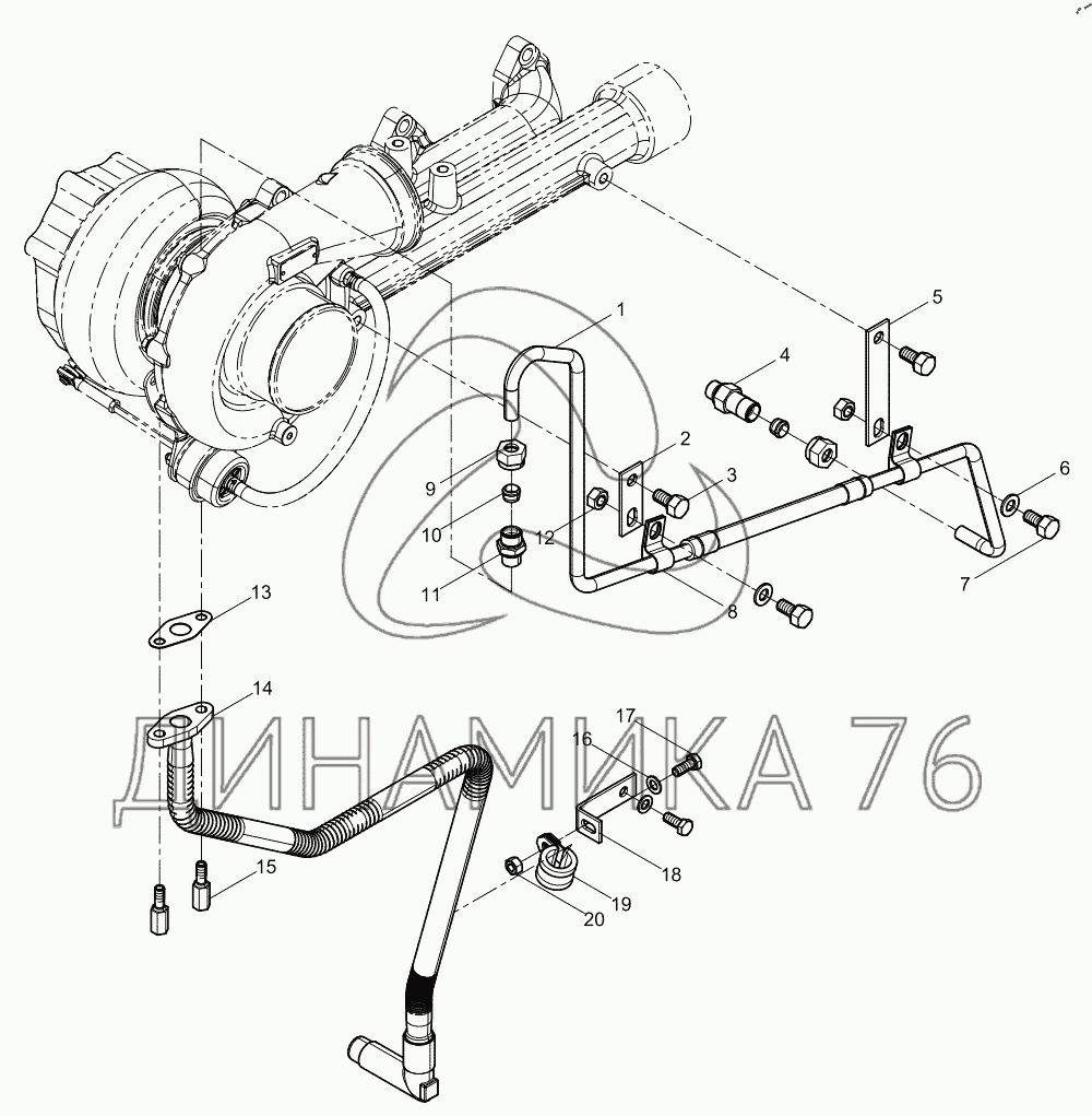 Перечень комплектующих от Turbocharger Oil Pipe Group на WP12 DHP12N0219