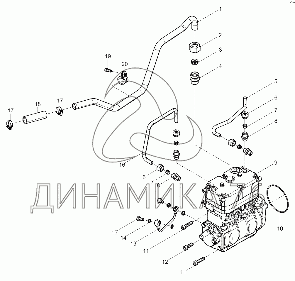 Маслопровод двухцилиндрового воздушного компрессора