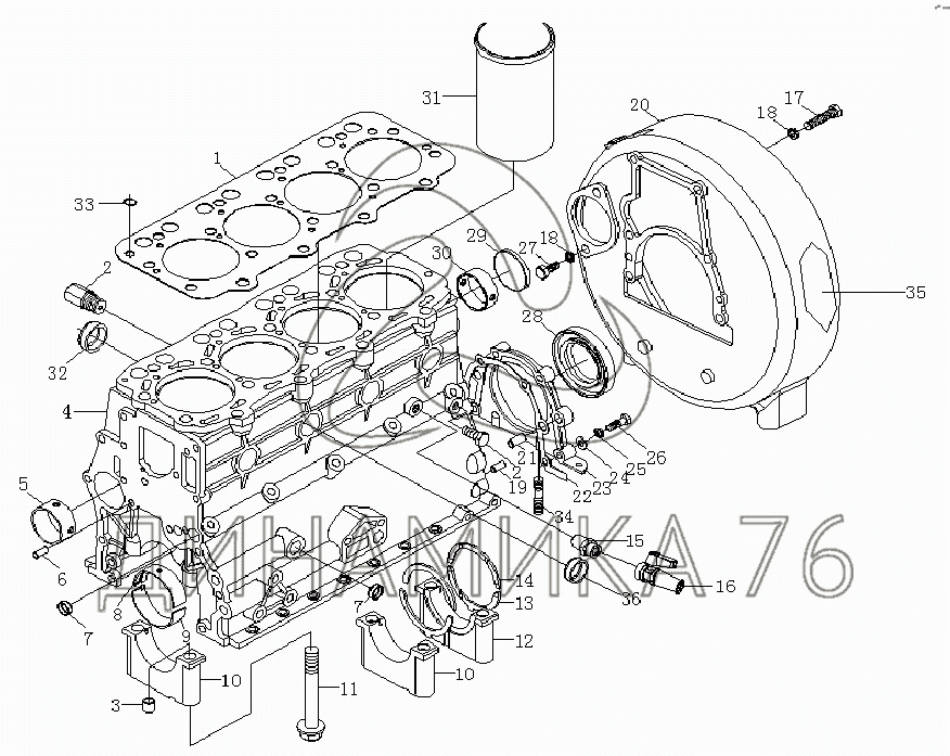 Cylinder Block Assembly (1) на WP2.1D18E2 (до 2013 г.)
