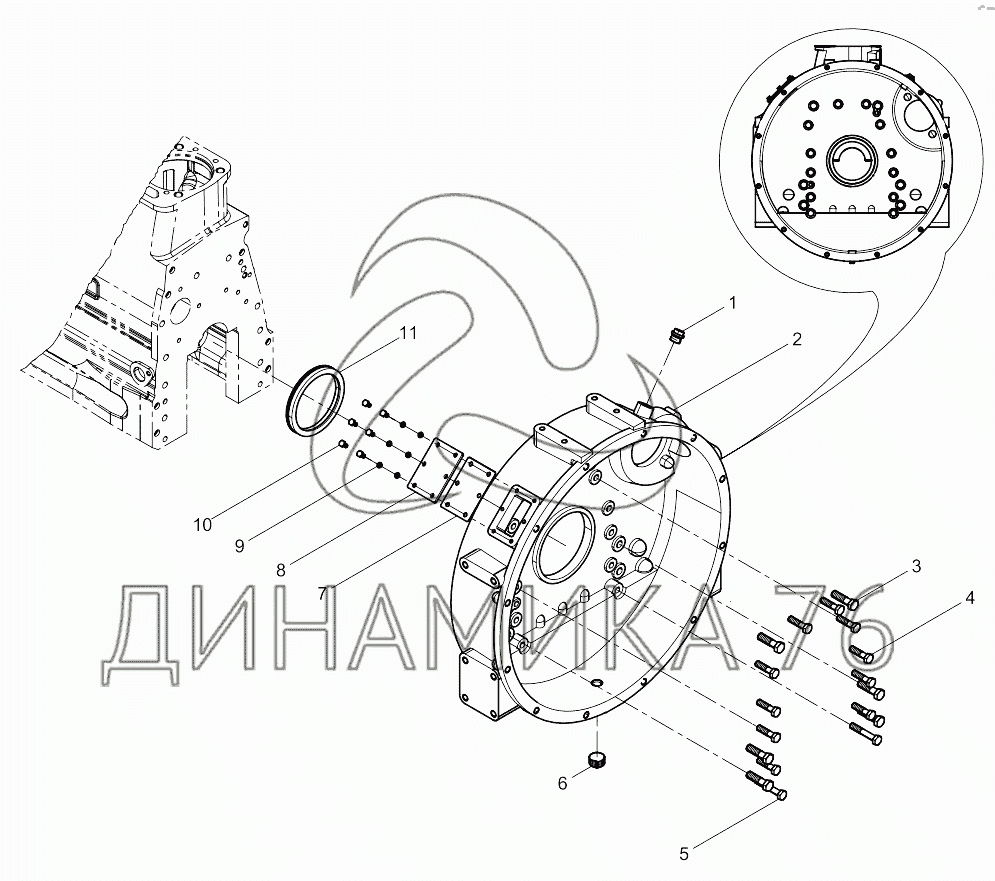 Перечень комплектующих от Flywheel housing group на WP6 DHB06G0131