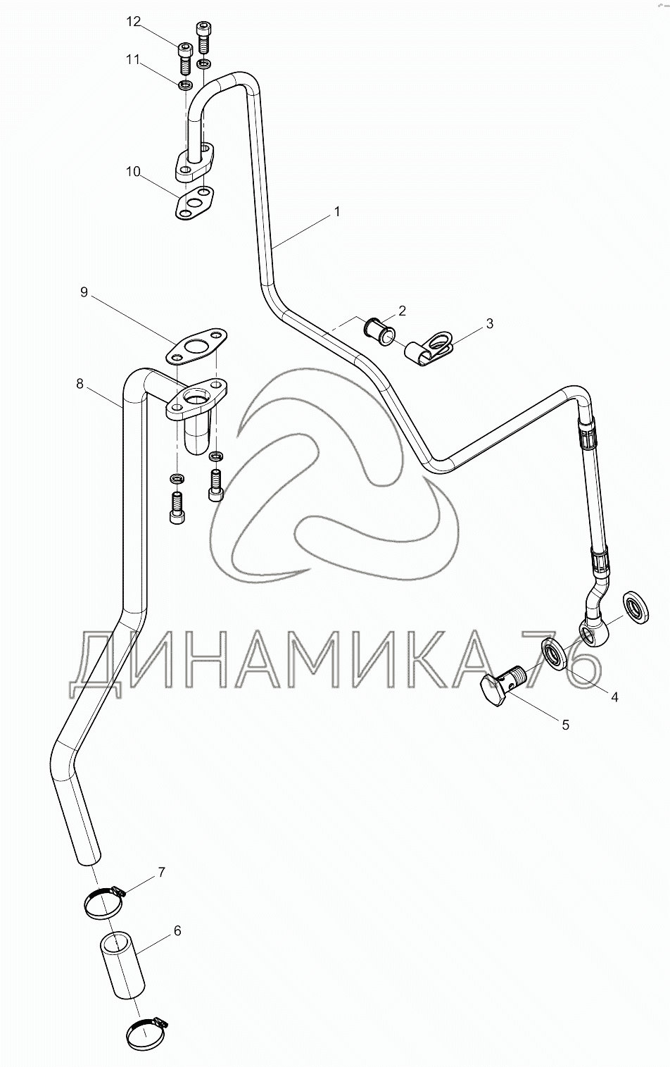 Перечень комплектующих от Turbocharger lubricating oil pipe assembly на WP6 DHB06G0131