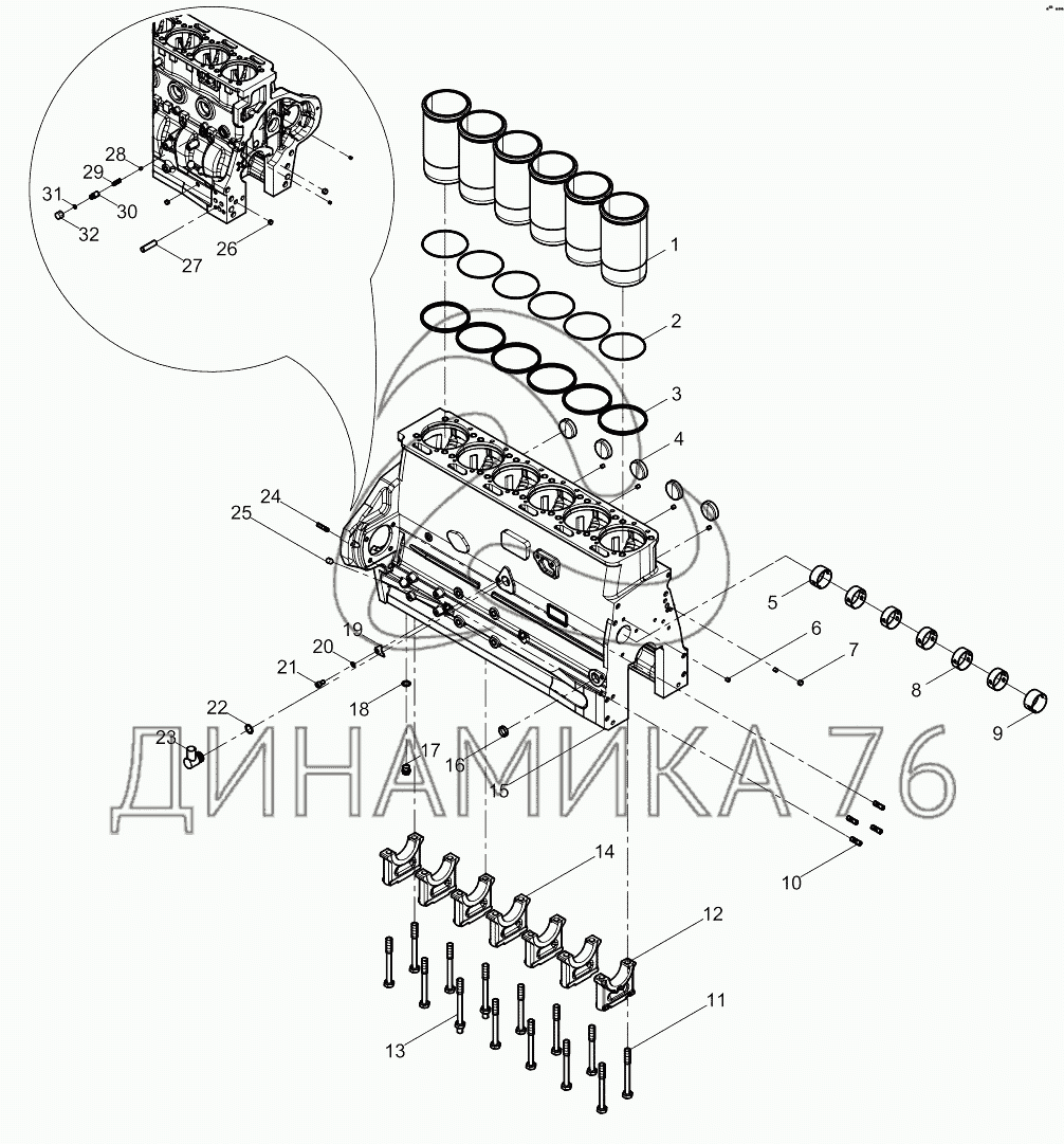 Схемы запчастей предназначены для справочных целей! Мы продаем не все запчасти от Cylinder block subassembly на WP6D132E200, представленные в этом списке.
