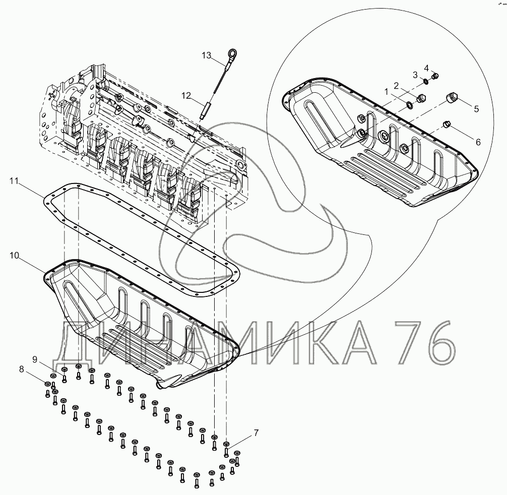 Перечень комплектующих от Oil pan assembly на WP6D132E200
