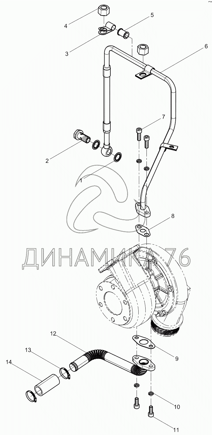 Перечень комплектующих от Turbocharger Oil pipe Group на WP6D132E200