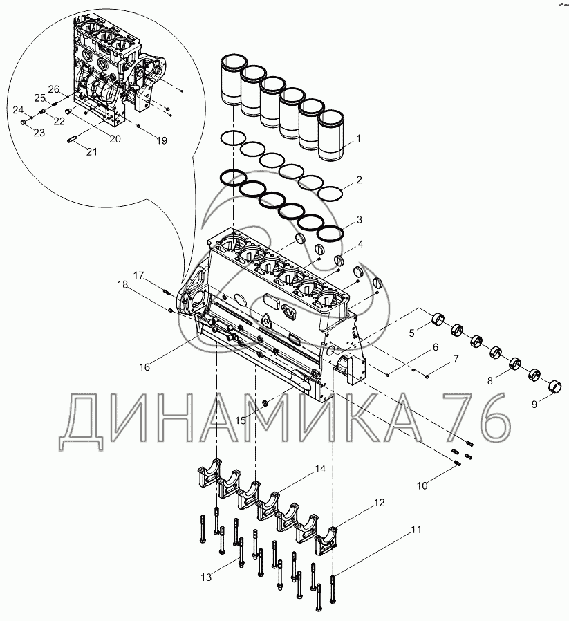 Схемы запчастей предназначены для справочных целей! Мы продаем не все запчасти от Cylinder block subassembly на WP6G125E22, представленные в этом списке.