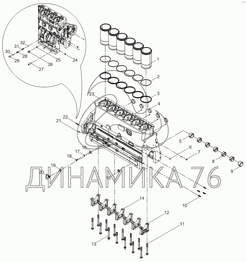 Схемы запчастей предназначены для справочных целей! Мы продаем не все запчасти от Cylinder block subassembly на WP6G140E22, представленные в этом списке.