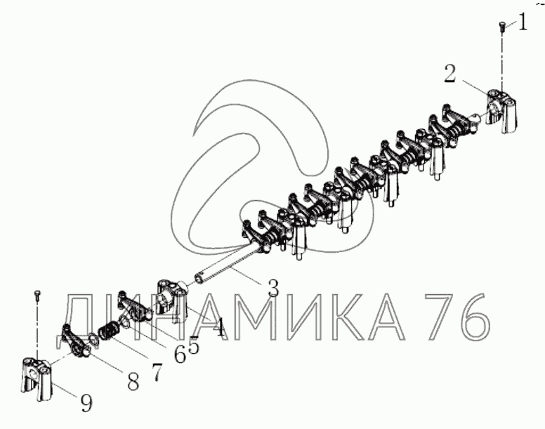 Перечень комплектующих от Rocker shaft assembly на WP7