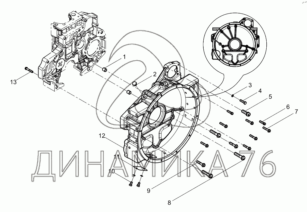 Перечень комплектующих от Flywheel Housing Group на WP7 DHP07Q0660