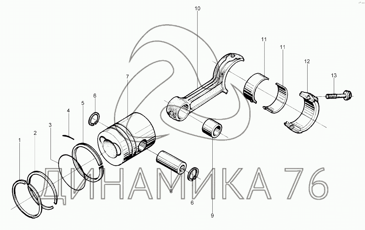 Перечень комплектующих от Piston connecting rod assembly на 490BPG