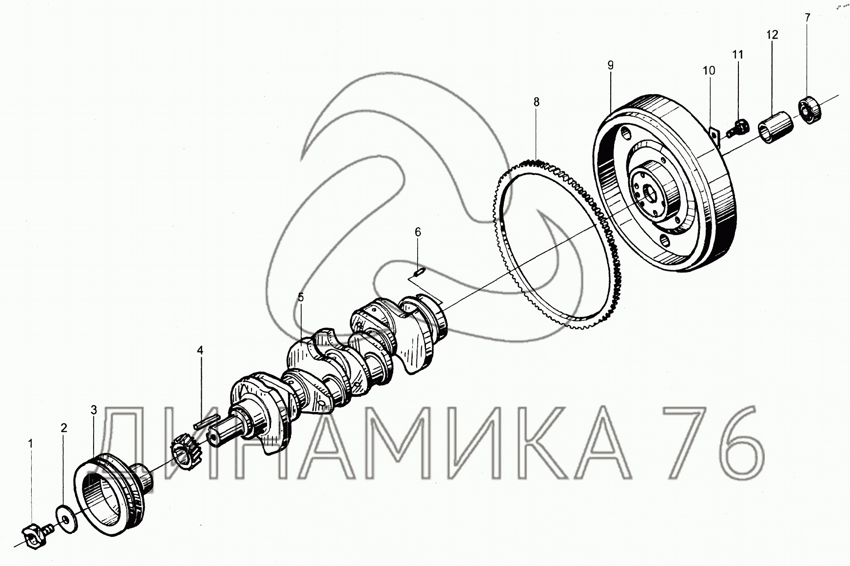 Перечень комплектующих от 498ВТ Crankshaft flywheel assembly на 498BT