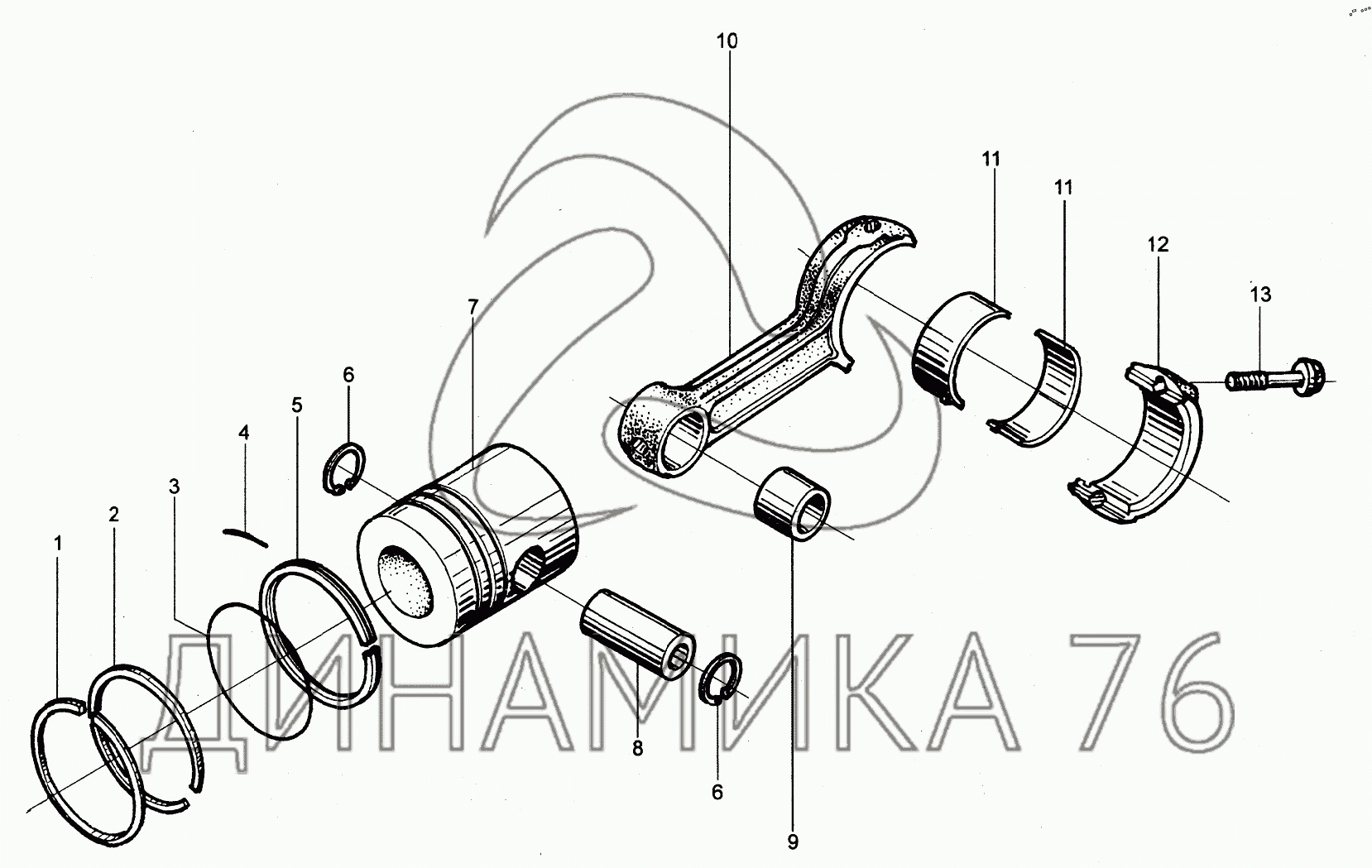 Перечень комплектующих от Piston connecting rod assembly на 498BT