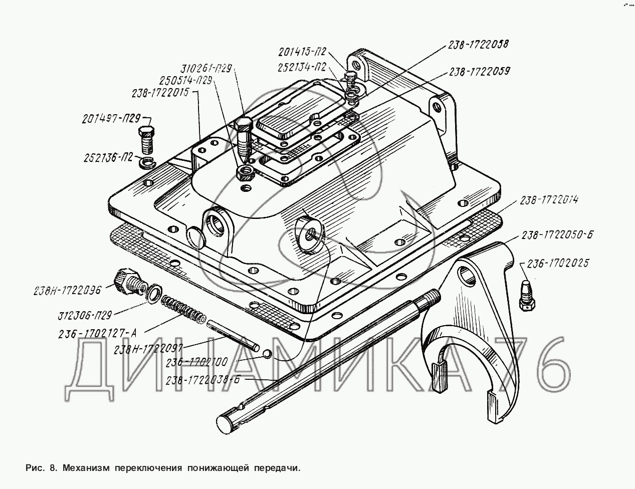 Перечень комплектующих от Механизм переключения понижающей передачи на Общий (см. мод-ции)