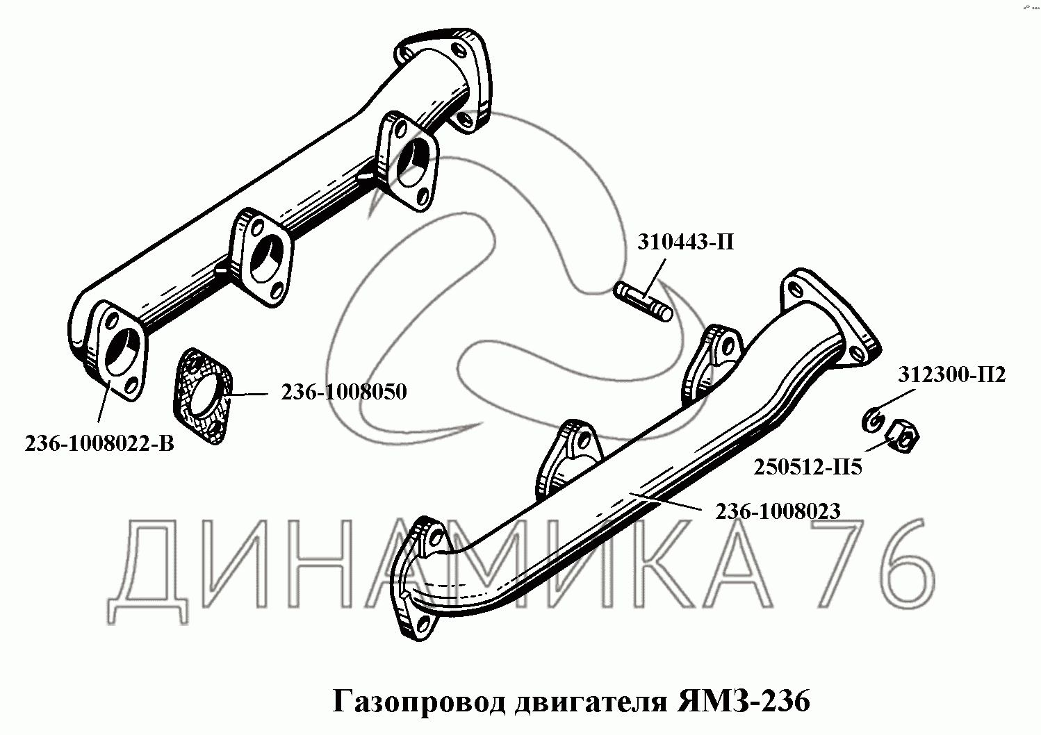 Газопровод двигателя ЯМЗ-236 — ЯМЗ-236, -238, -238НБ: