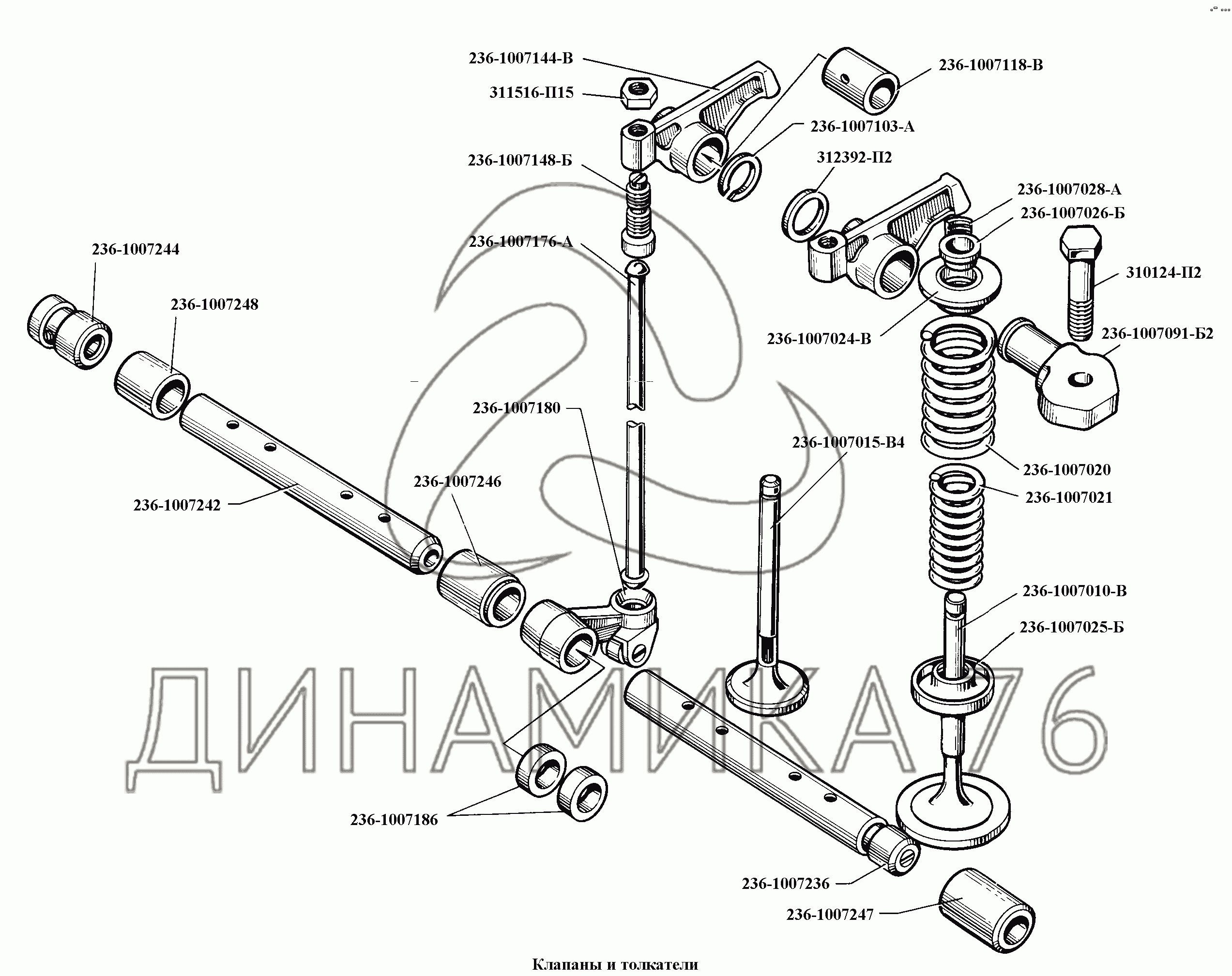 Клапаны и толкатели — ЯМЗ-236, -238, -238НБ:
