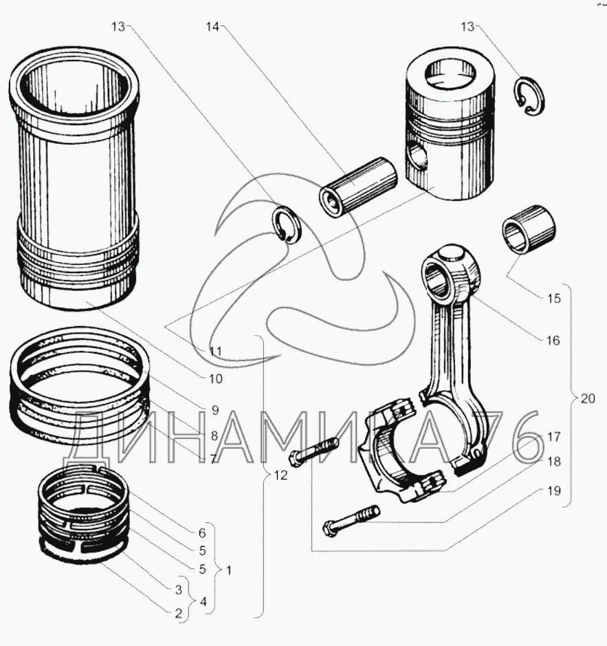 Перечень комплектующих от Поршень и шатун на ЯМЗ-236М2