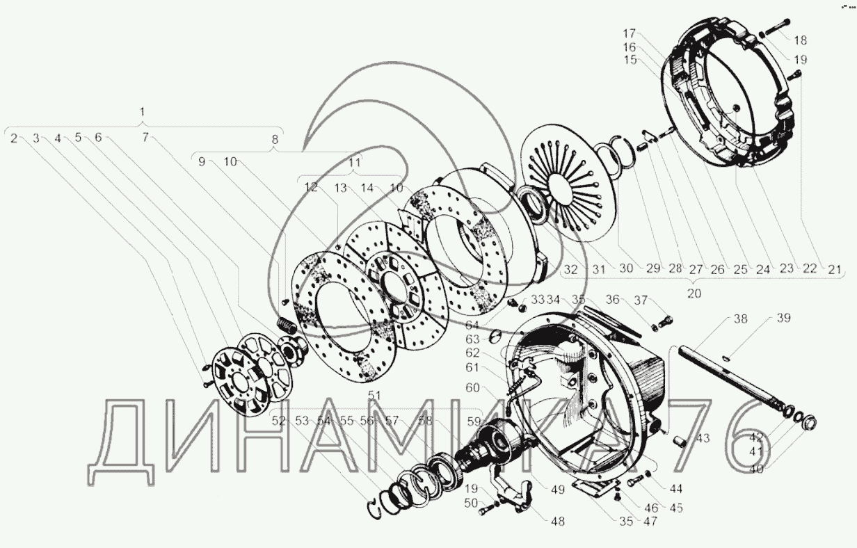 Перечень комплектующих от Сцепления ЯМЗ-181-10 на ЯМЗ-236М2
