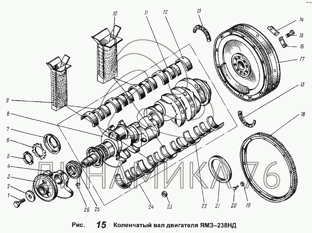 Перечень комплектующих от Коленчатый вал двигателя ЯМЗ-238НД на ЯМЗ-238 НД