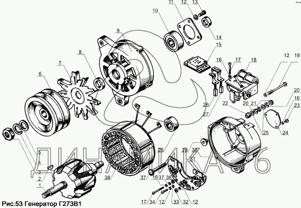 Перечень комплектующих от Генератор 273В1 на ЯМЗ-238Д и Б