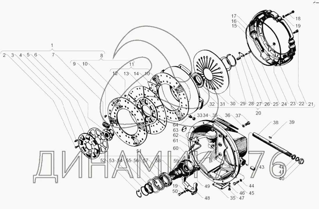Перечень комплектующих от Сцепление ЯМЗ-182 на ЯМЗ-238М2