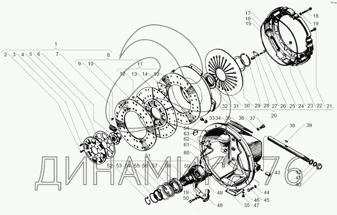 Перечень комплектующих от Сцепление ЯМЗ-182-10 на ЯМЗ-238М2