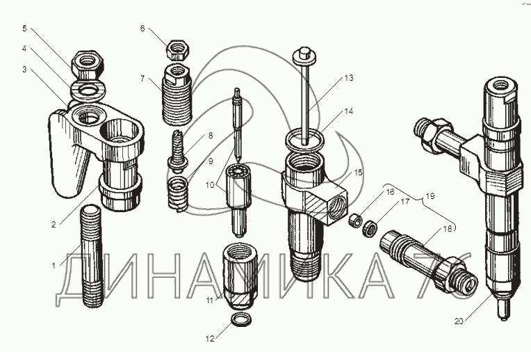 Перечень комплектующих от Форсунка на ЯМЗ-238НД3, НД4, НД5