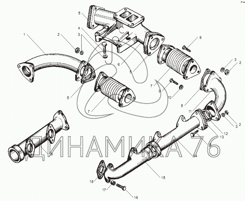 Перечень комплектующих от Коллекторы выпускные на ЯМЗ-238НД3, НД4, НД5