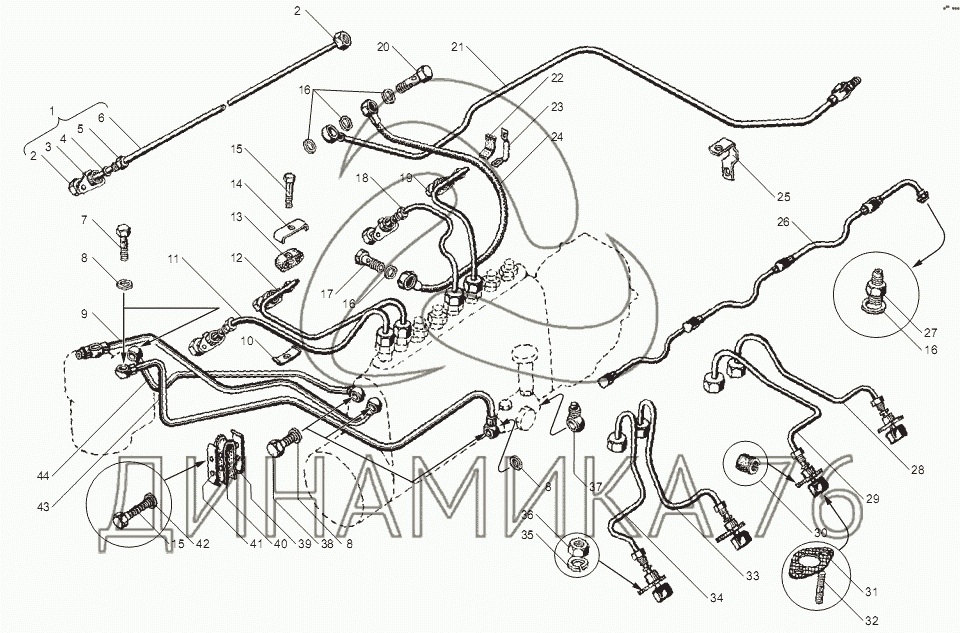 Перечень комплектующих от Трубопроводы топливные на ЯМЗ-238НД3, НД4, НД5