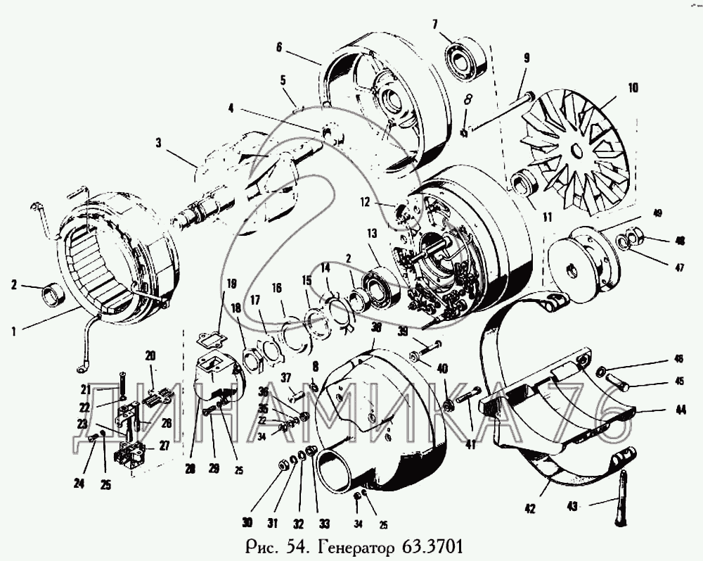Перечень комплектующих от Генератор 63.3701 на ЯМЗ-240