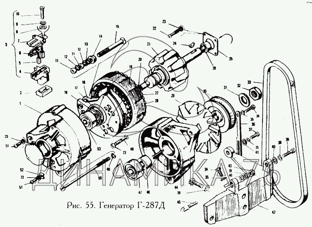 Перечень комплектующих от Генератор Г-287Д на ЯМЗ-240