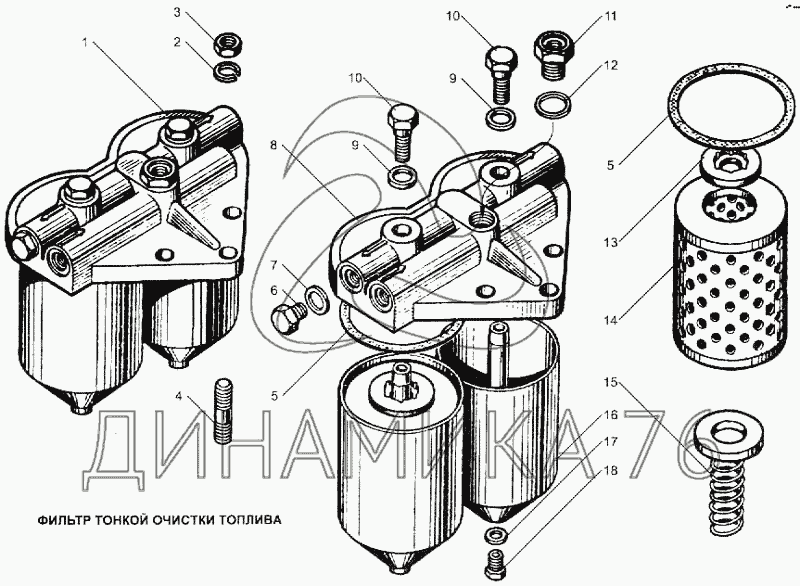Перечень комплектующих от Фильтр тонкой очистки топлива на ЯМЗ-240