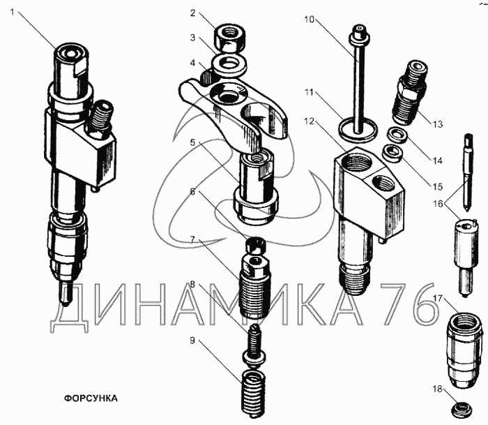 Перечень комплектующих от Форсунка на ЯМЗ-240