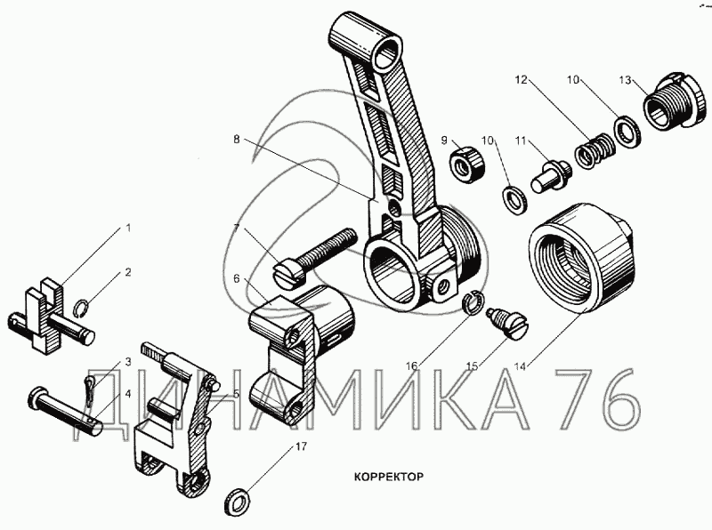 Рычаг корректора со штифтом в сборе