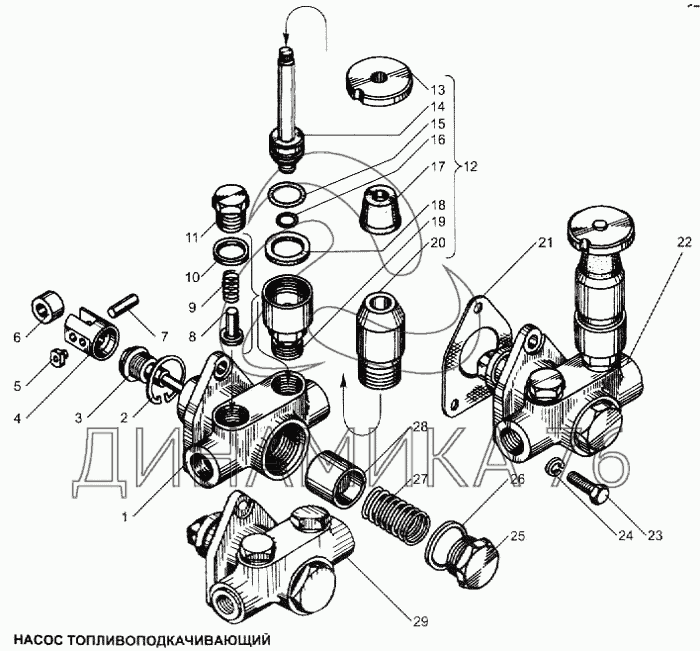 Перечень комплектующих от Насос топливоподкачивающий на ЯМЗ-240