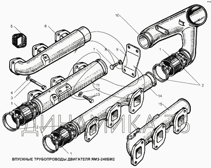 Перечень комплектующих от Впускные трубопроводы двигателя ЯМЗ-240БМ2 на ЯМЗ-240